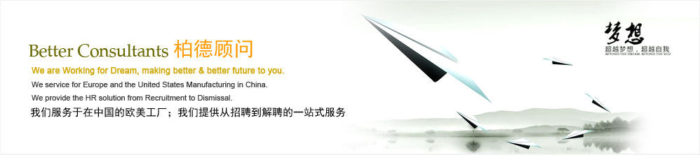 背景:柏德公司自創(chuàng)立以來,致力于外資企業(yè)及本土大中型企業(yè)之招聘及培訓(xùn)服務(wù)。多年來,我們一如既往地堅(jiān)持誠信與高效的服務(wù)宗旨,成功為我們的客戶提供超過上千位中高級人才。同時(shí),我們與眾多的客戶建立了長期的合作關(guān)系,成為客戶的長期人力資源顧問。多年來,我們?yōu)槌^一百家外資或合資企業(yè)服務(wù),其中半數(shù)是財(cái)富五百強(qiáng)的企業(yè)。